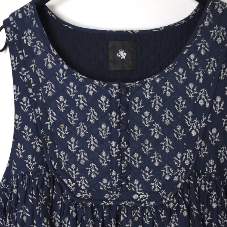 maison de soil 80s COTTON VOILE FLOWER BLOCK PRINT RAJASTHAN TUCK GATHERED NO/SL QUILTING DRESS 2色 2サイズ [NMDS25553]