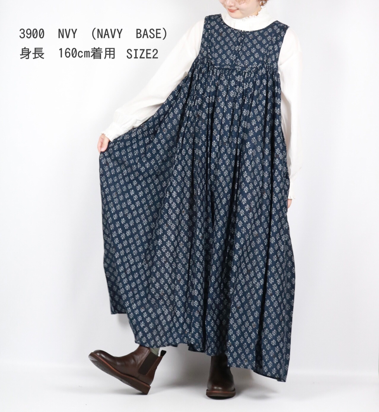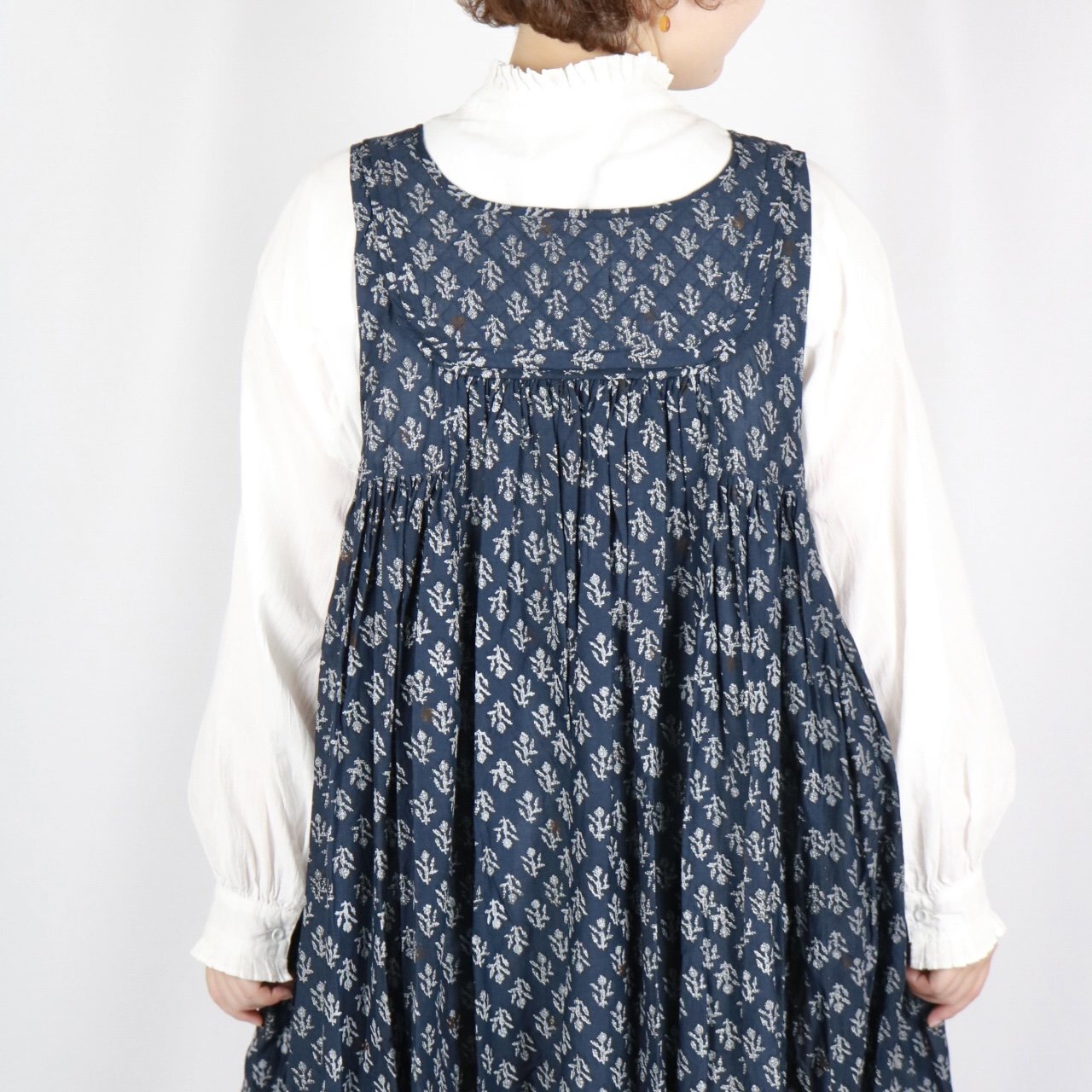 maison de soil 80s COTTON VOILE FLOWER BLOCK PRINT RAJASTHAN TUCK GATHERED NO/SL QUILTING DRESS 2色 2サイズ