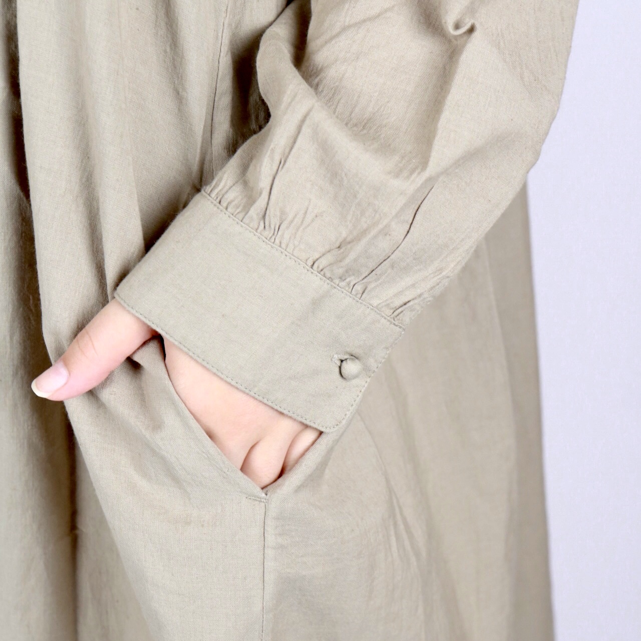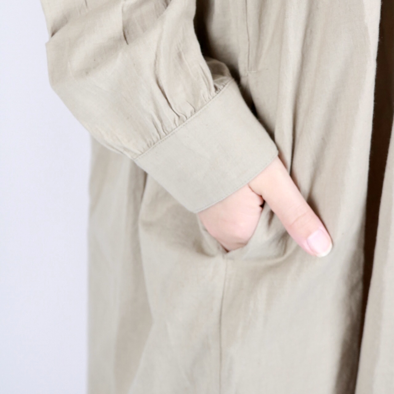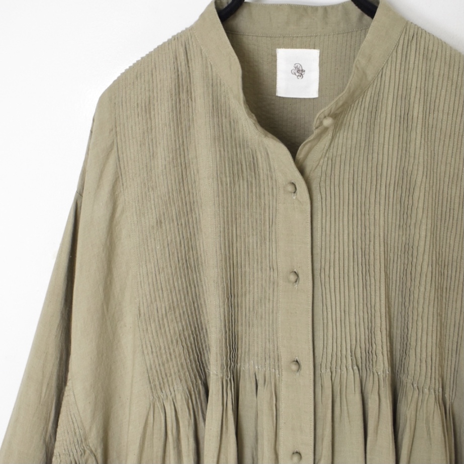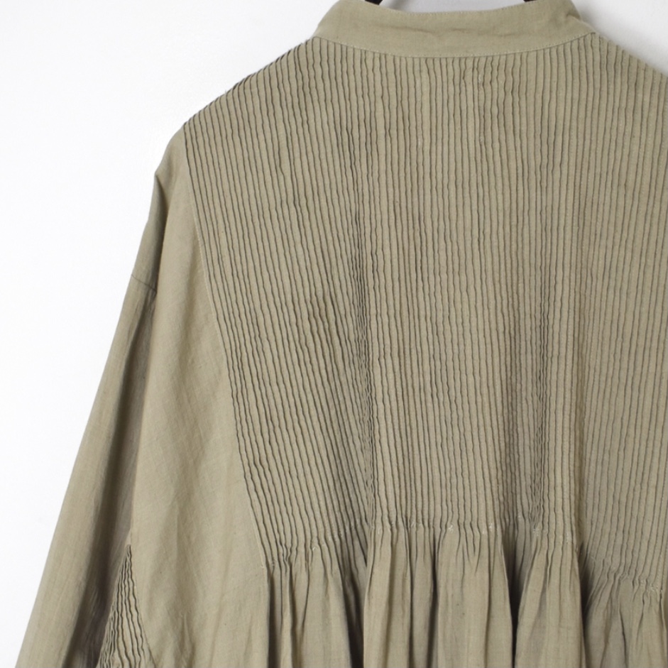 maison de soil HANDWOVEN HEAVY COTTON PLAIN MINI PINTUCK BANDED COLLAR SHIRT DRESS [INMDS25724]