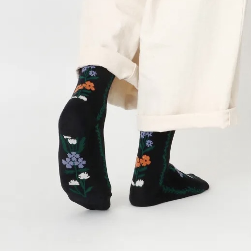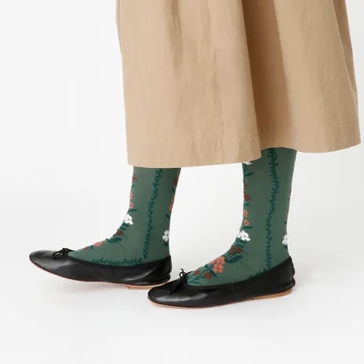 繊細な花柄が上品な雰囲気で、大人の女性におすすめのハイソックスです。