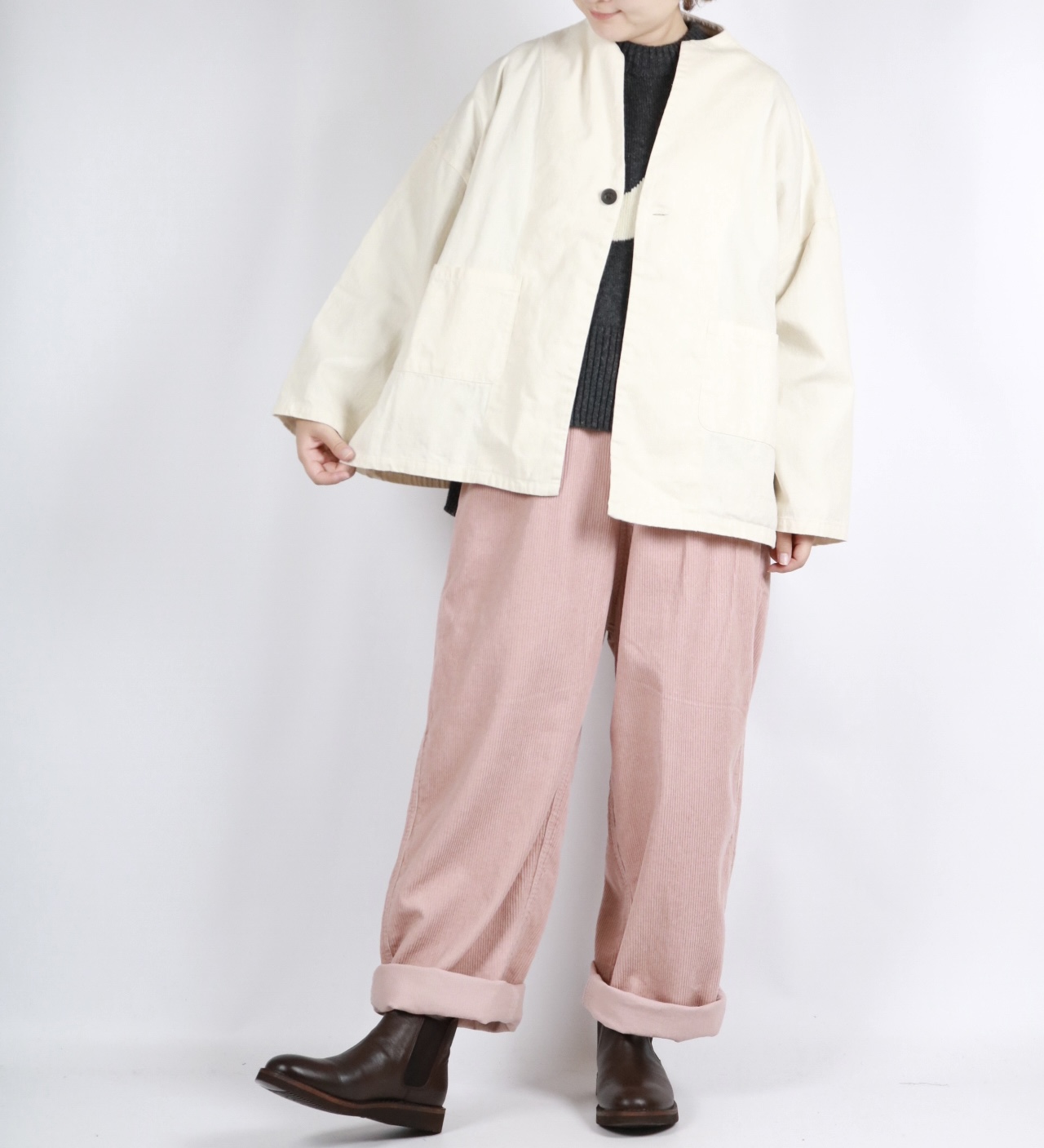コーデュロイの凹凸の起毛感が温かみのある表情を作り出しています。