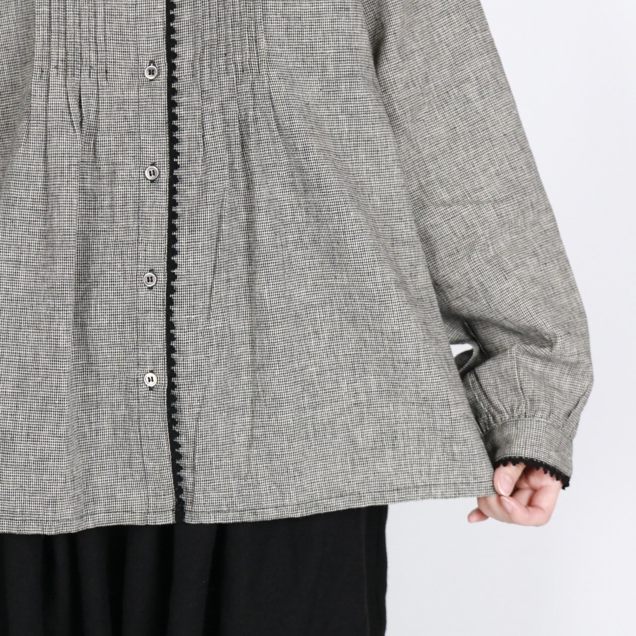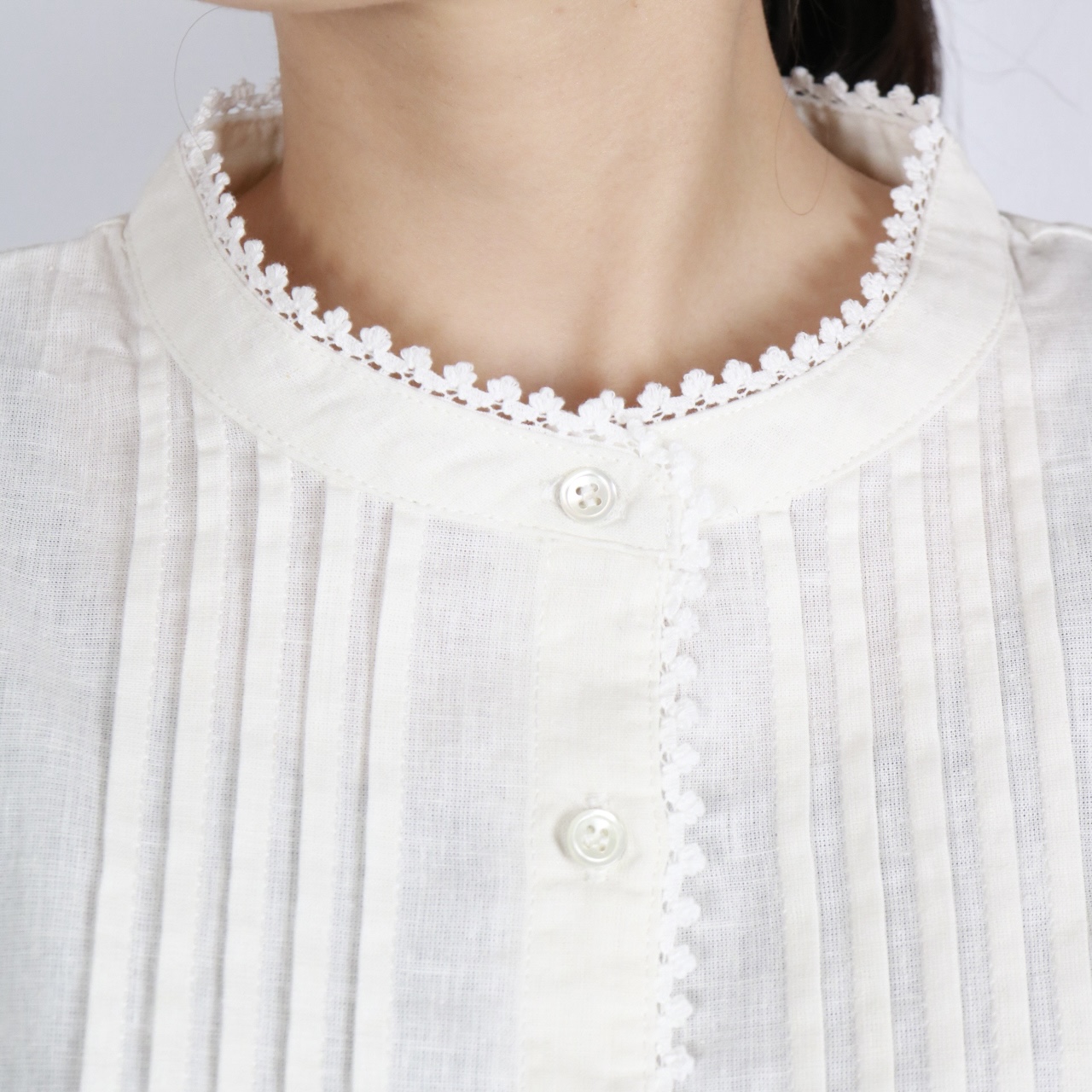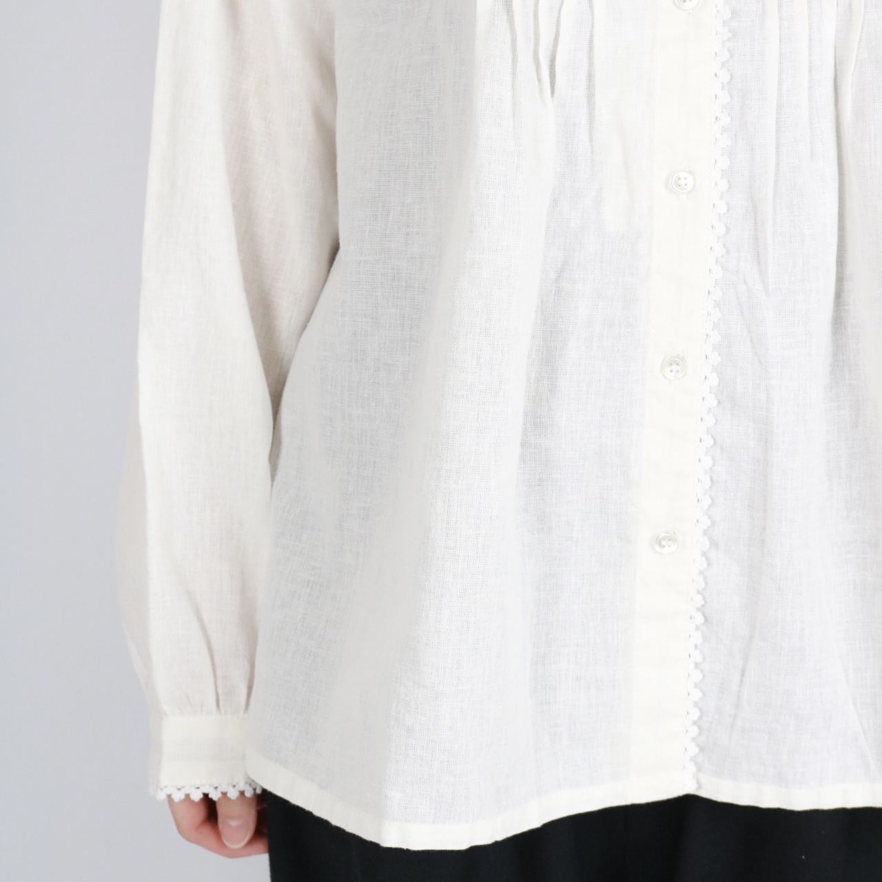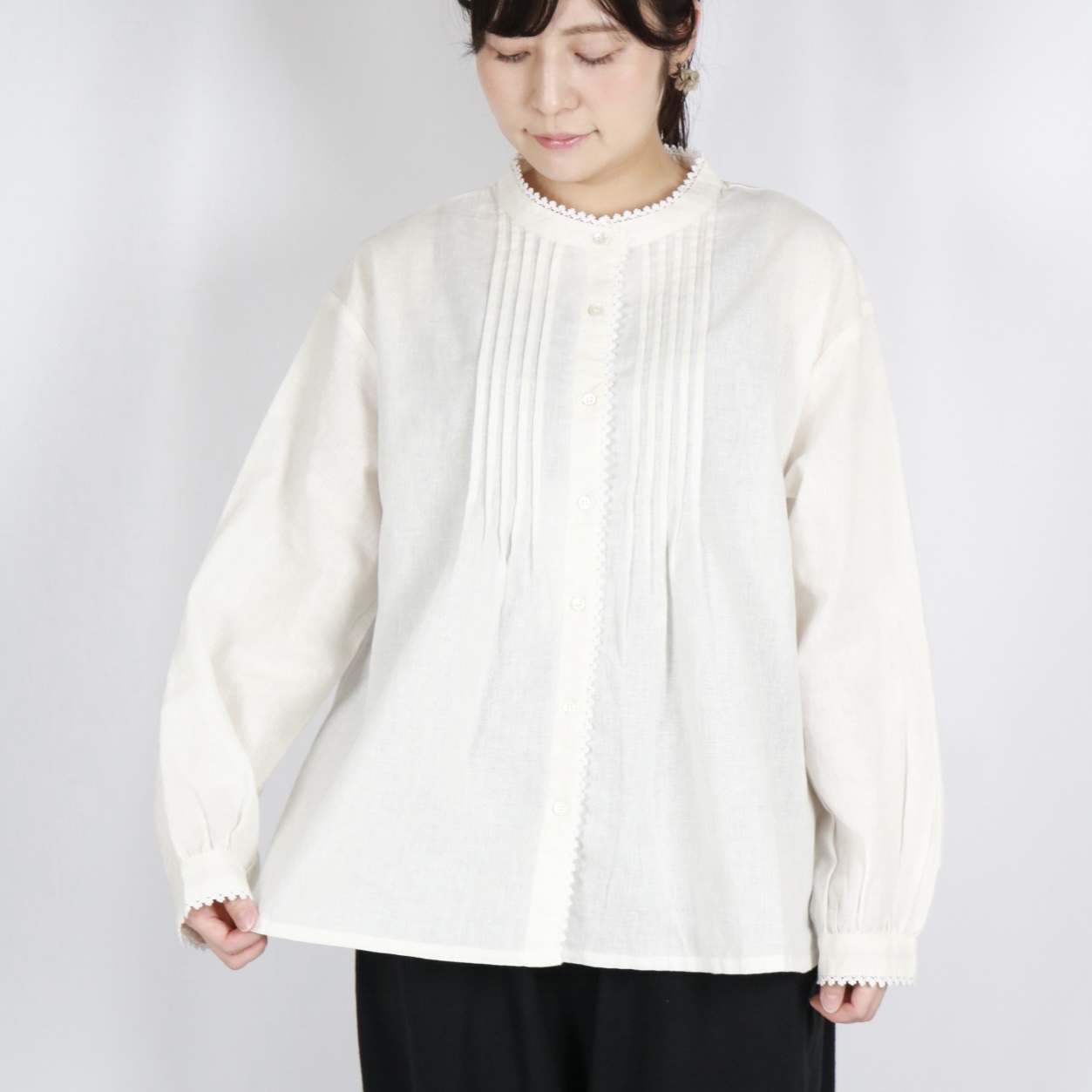 bluewillow コットンリネン平織り無地・千鳥 ピコレース ピンタックブラウス 2色