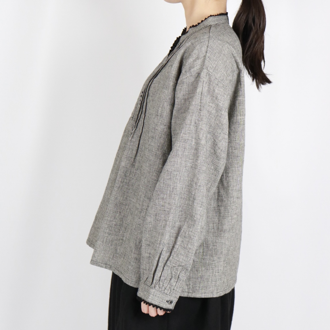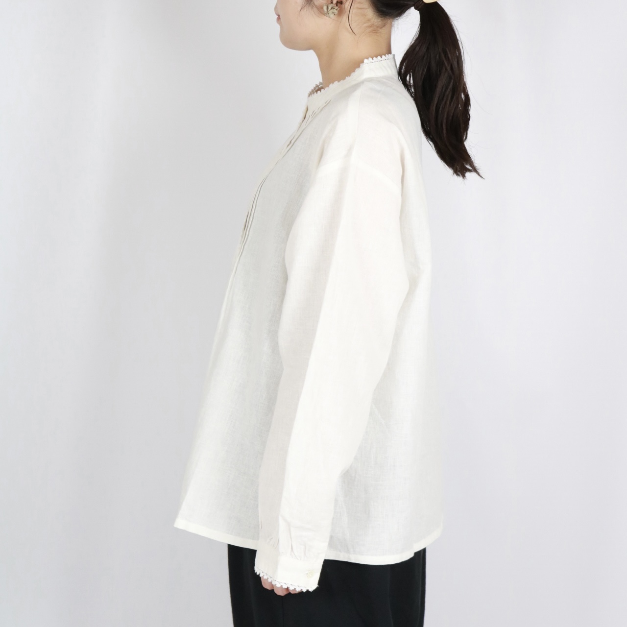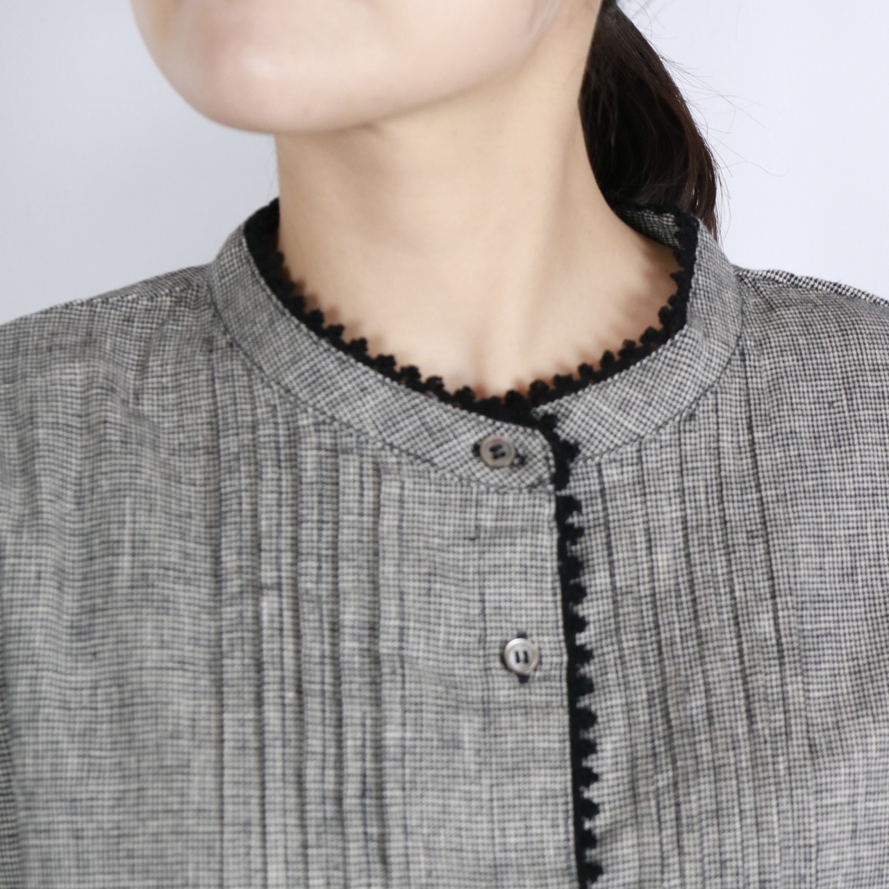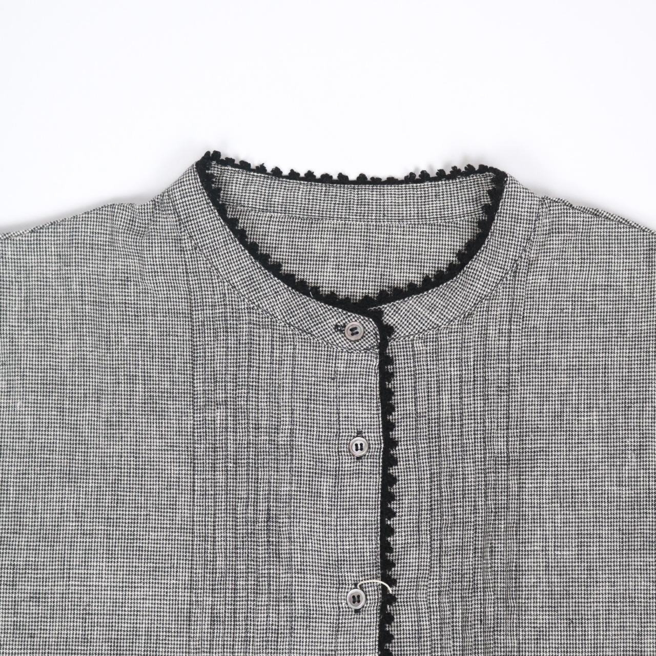 bluewillow コットンリネン平織り無地・千鳥 ピコレース ピンタックブラウス 2色