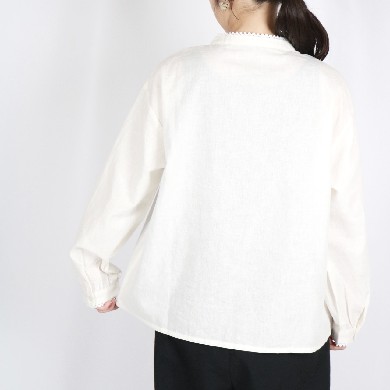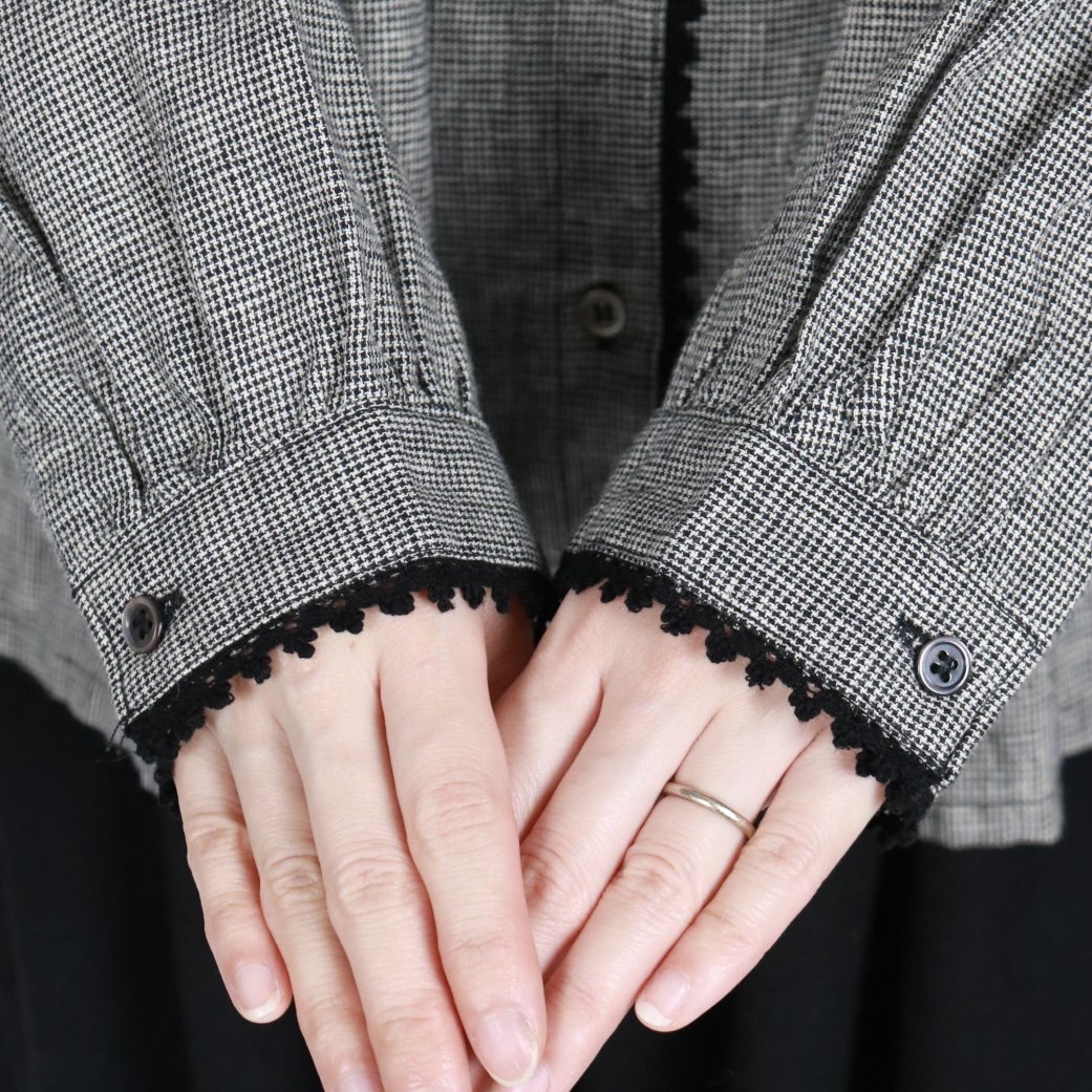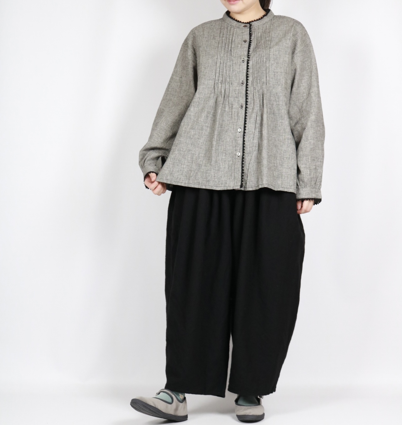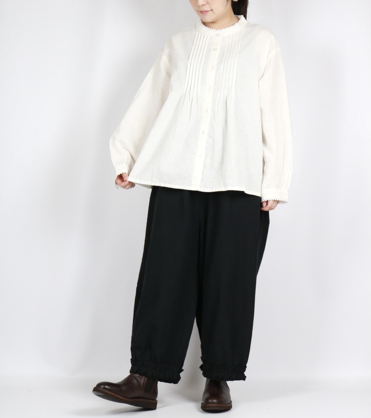 bluewillow コットンリネン平織り無地・千鳥 ピコレース ピンタックブラウス 2色