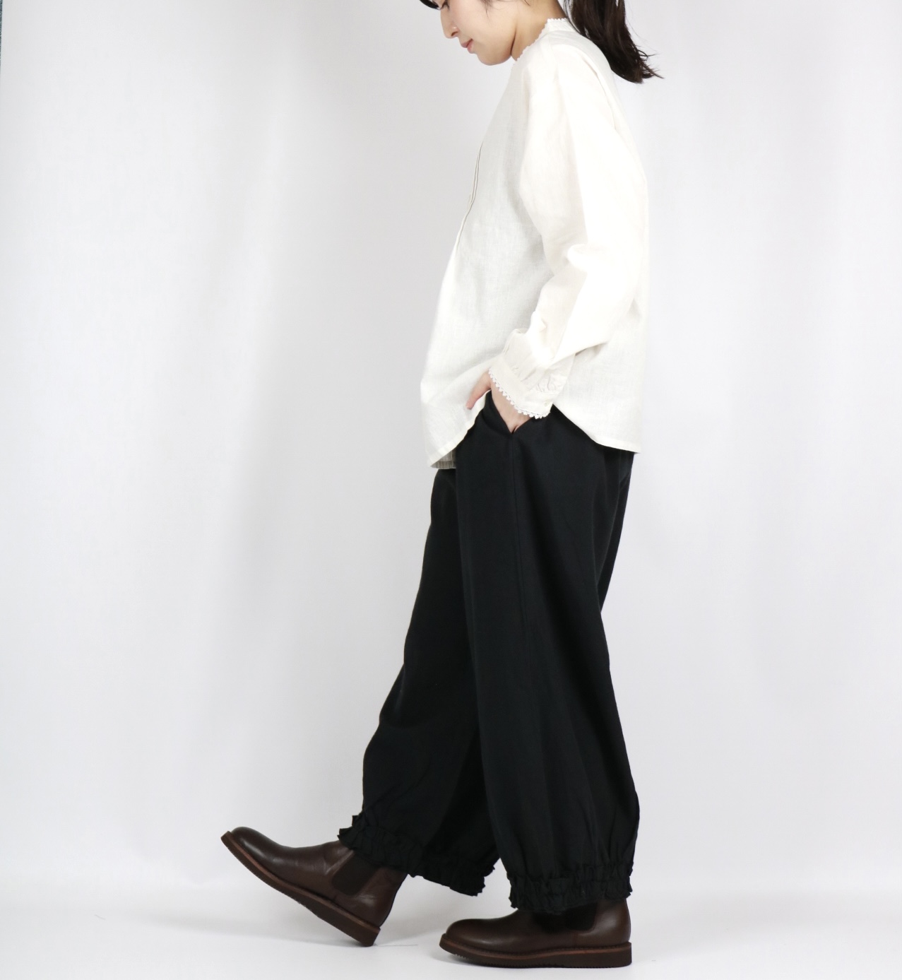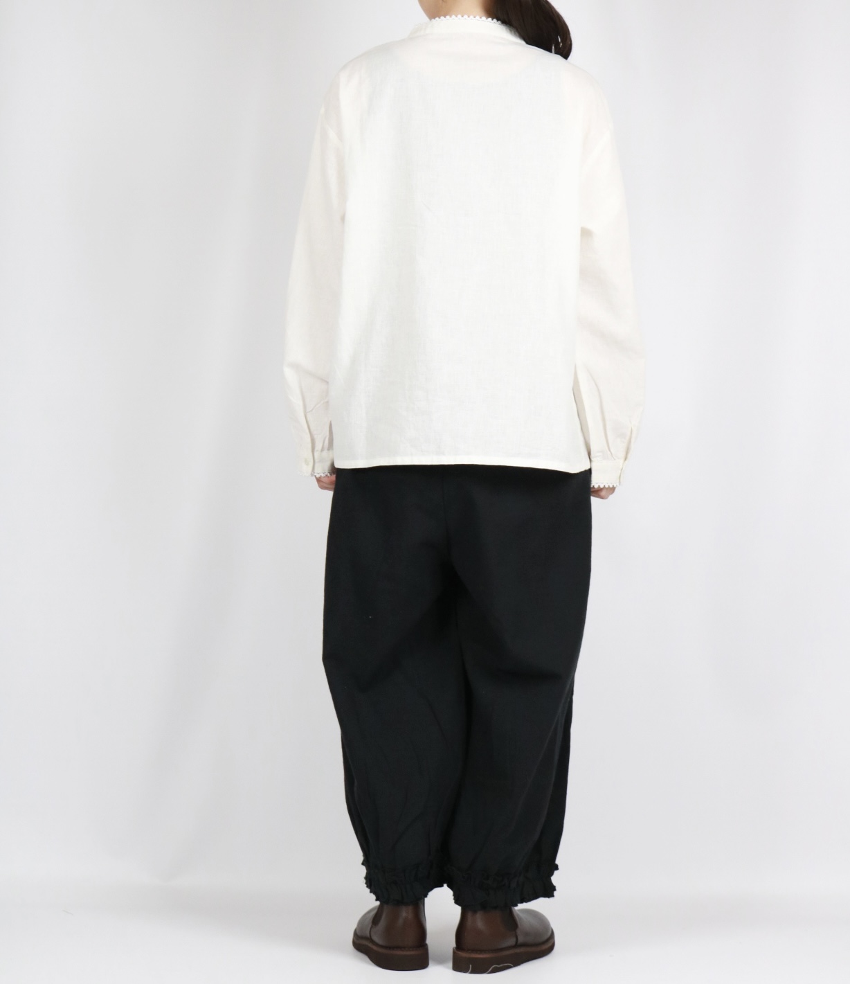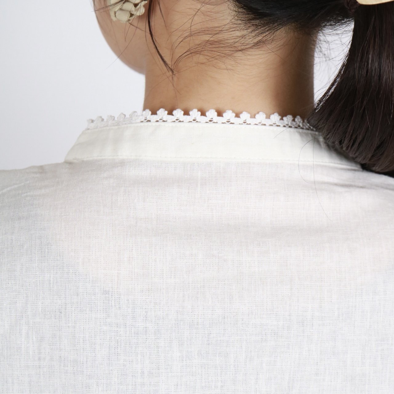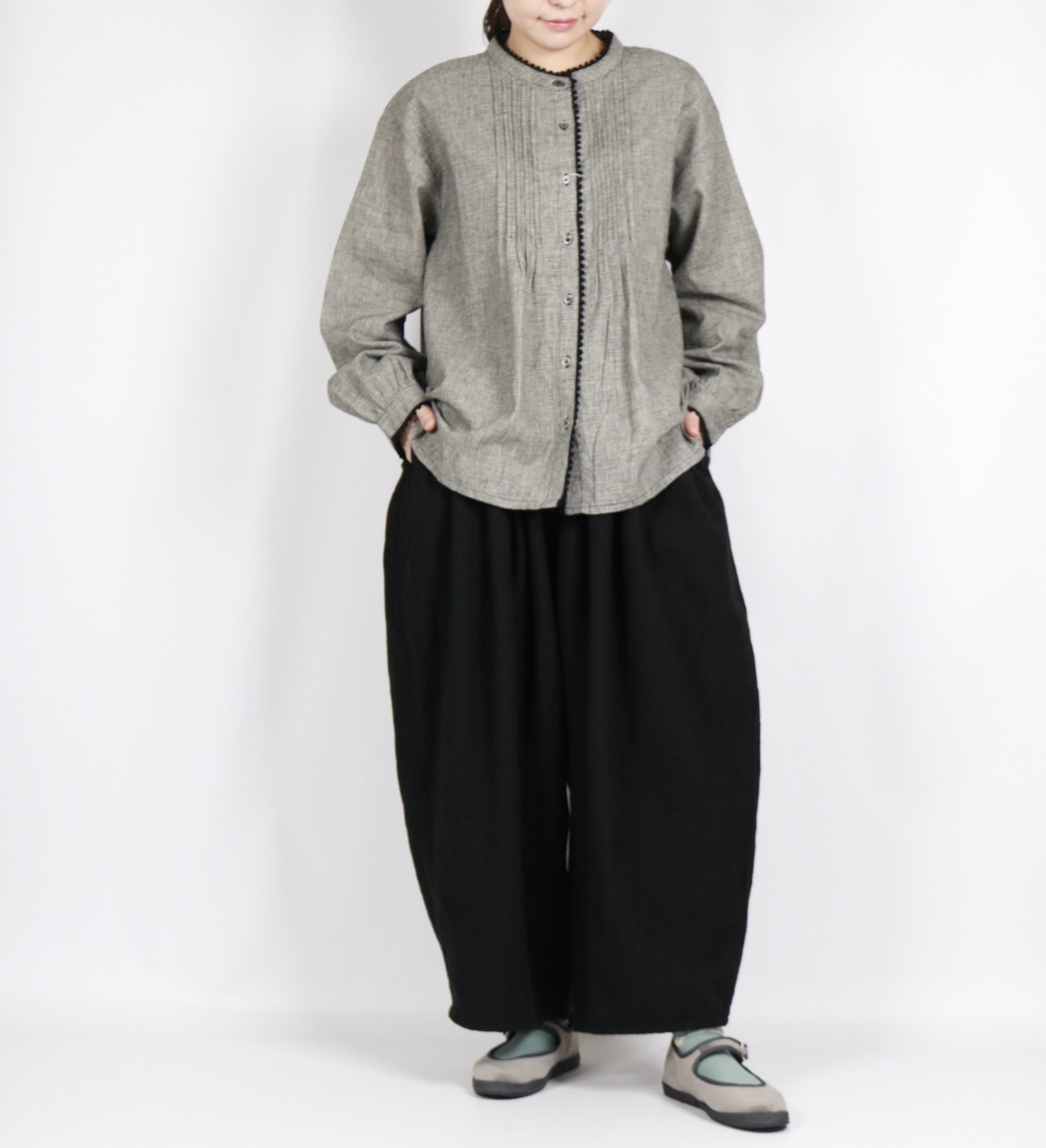 bluewillow コットンリネン平織り無地・千鳥 ピコレース ピンタックブラウス 2色