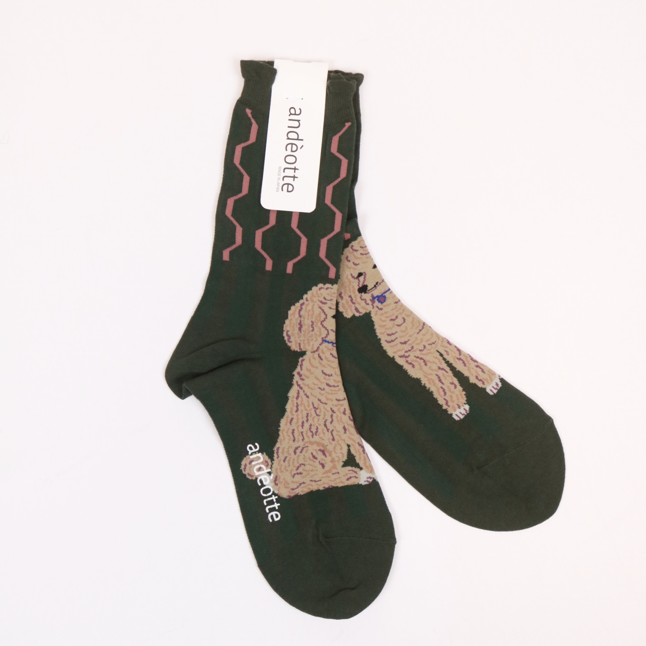 andè ハイゲージクルーソックス ドッグ グリーンソックス 2色