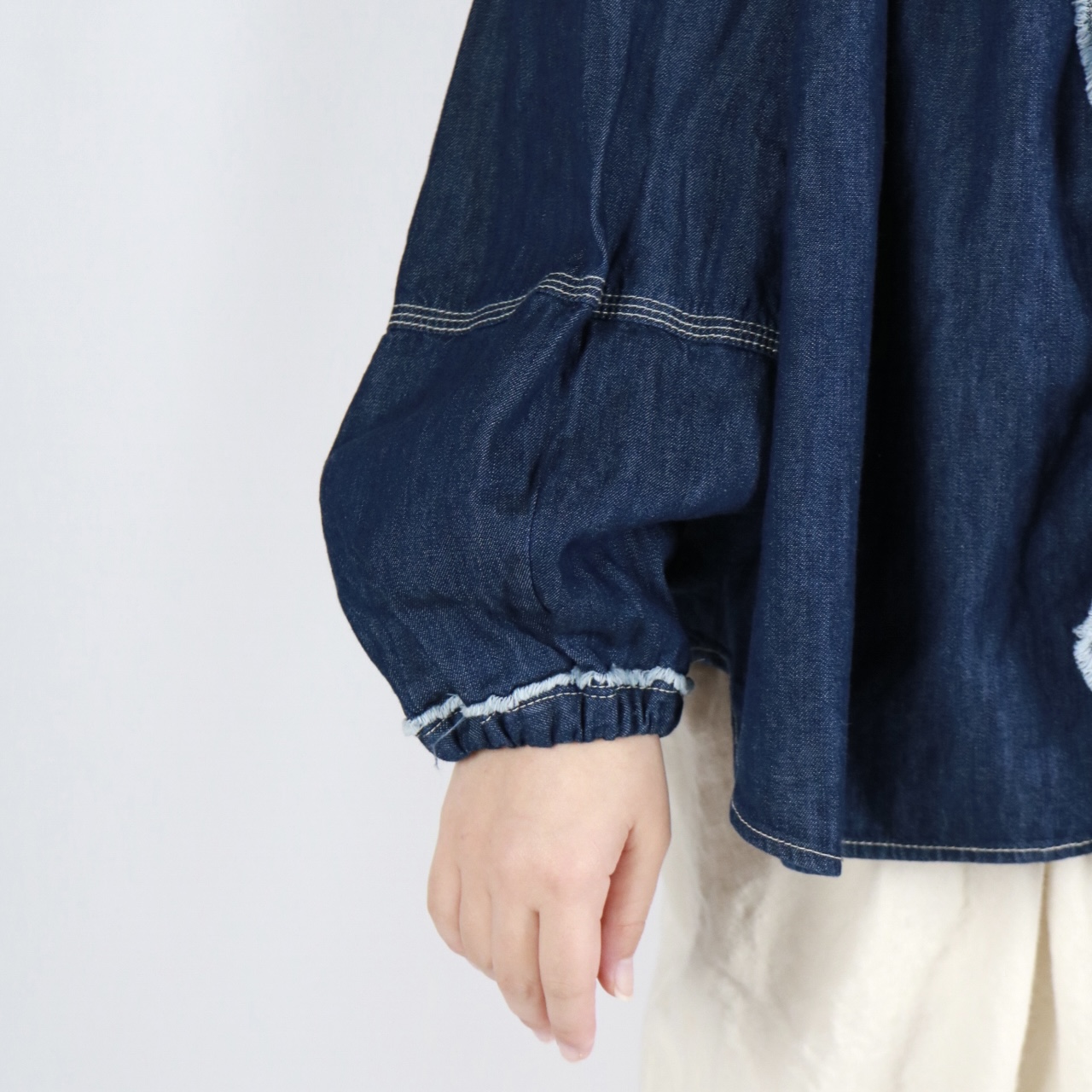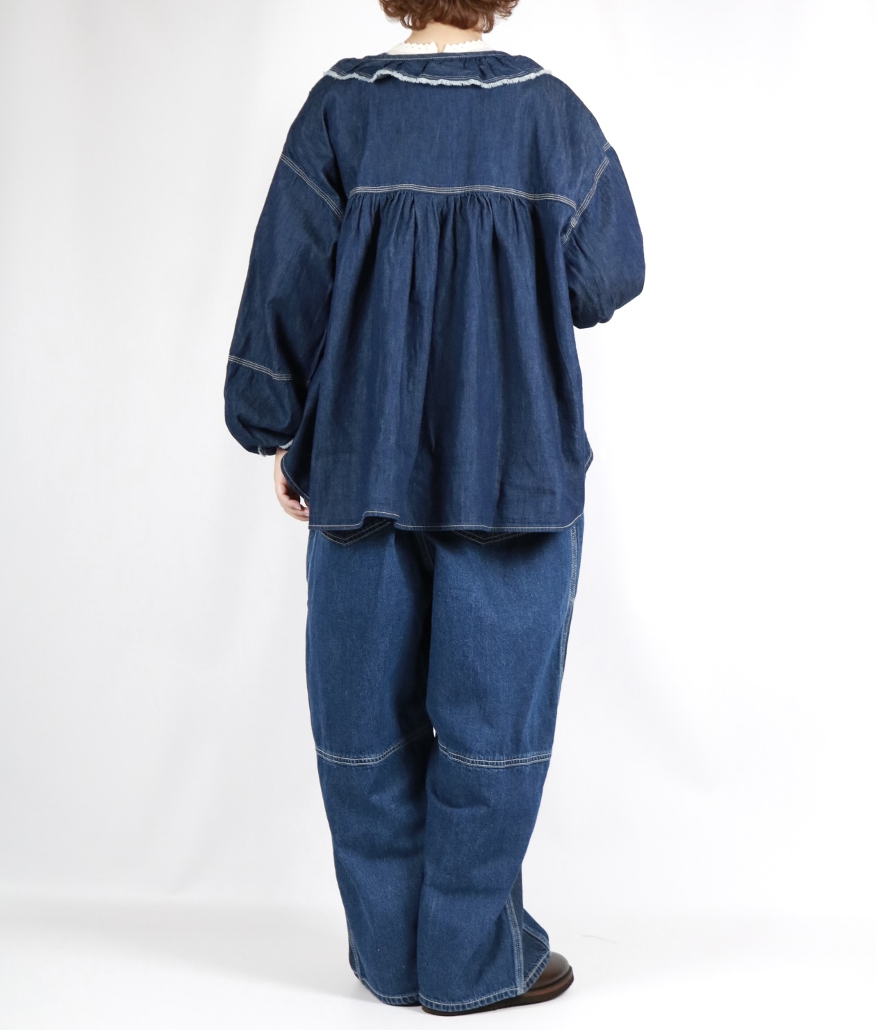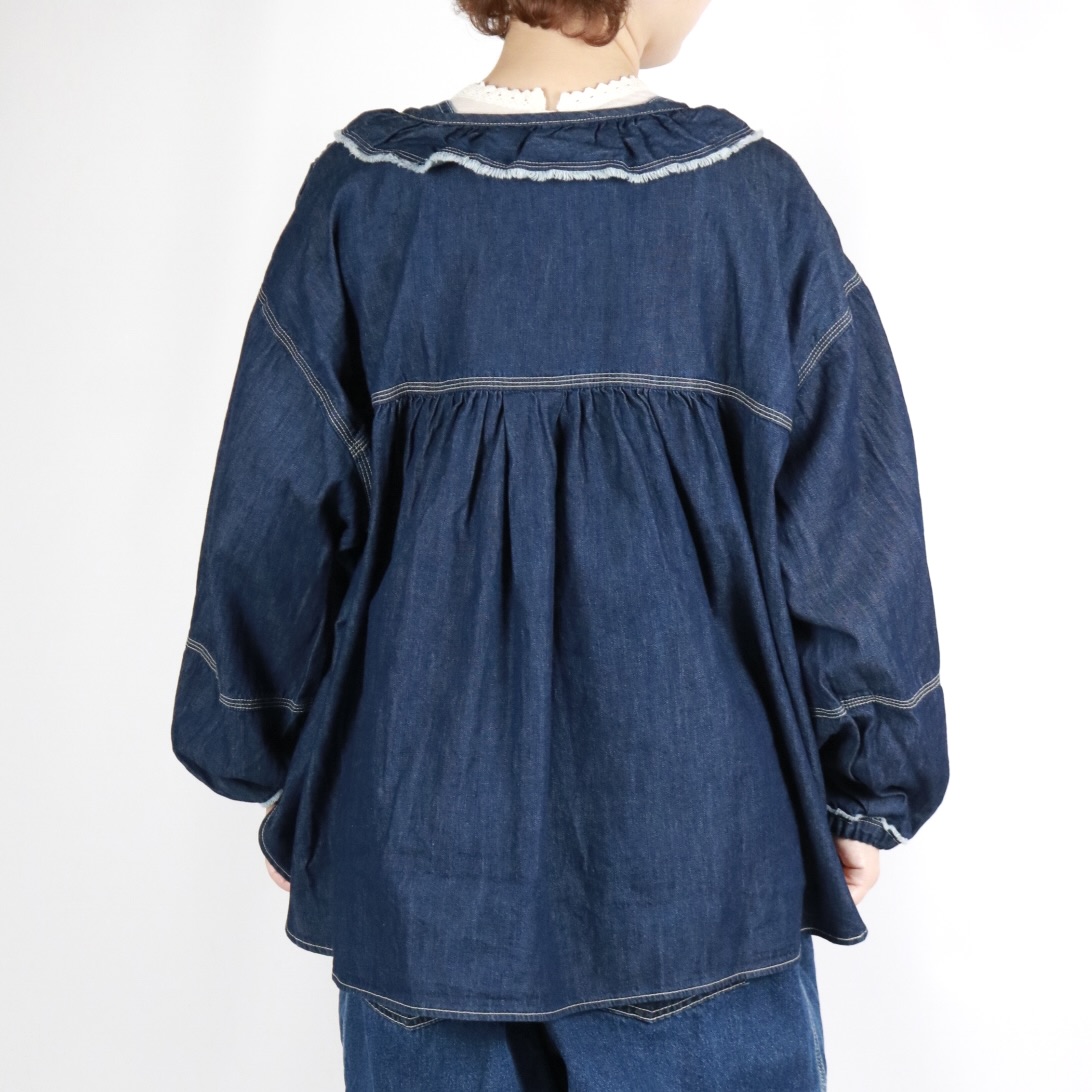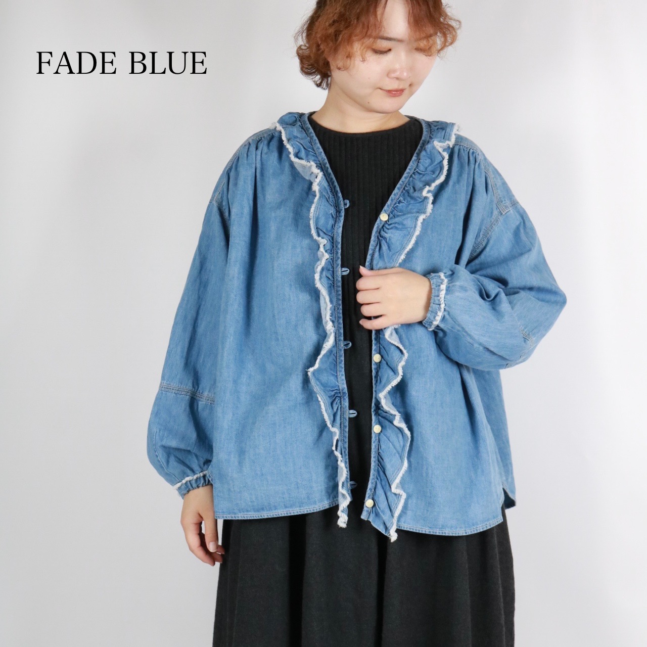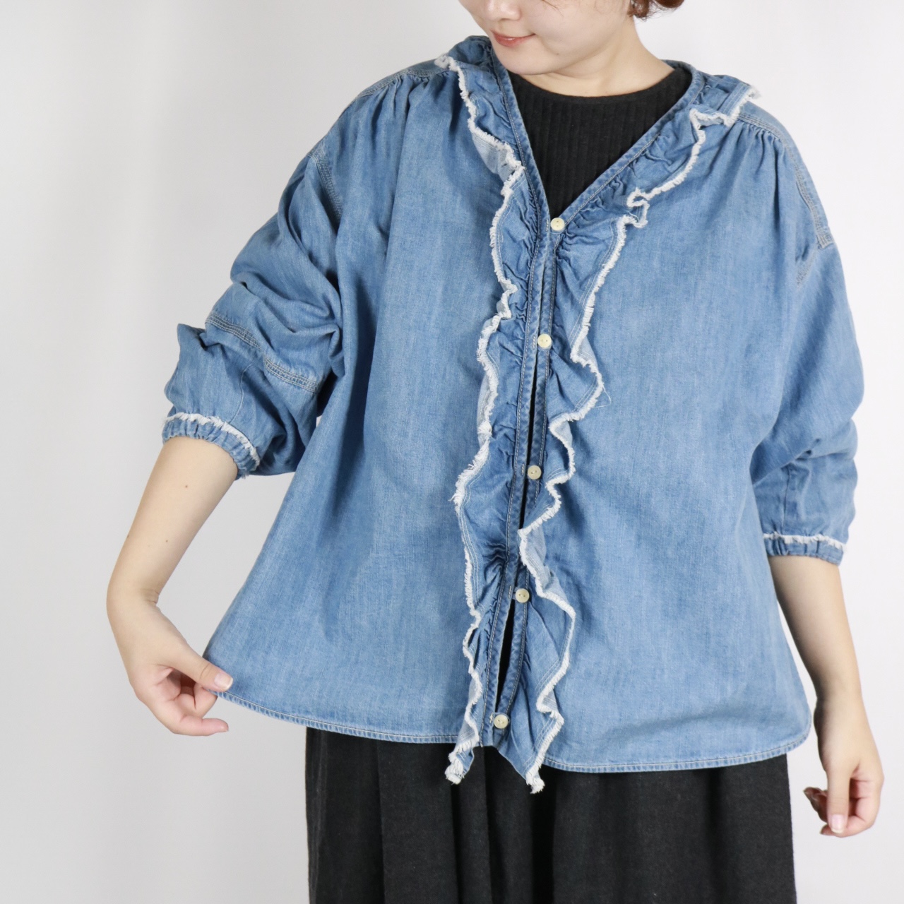 tumugu: ライトオンスデニムフリルブラウス 2色 [TB25325]