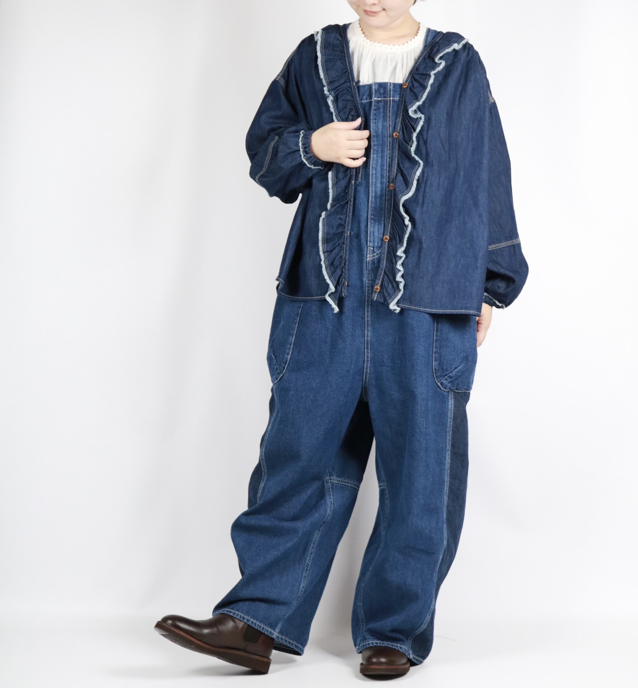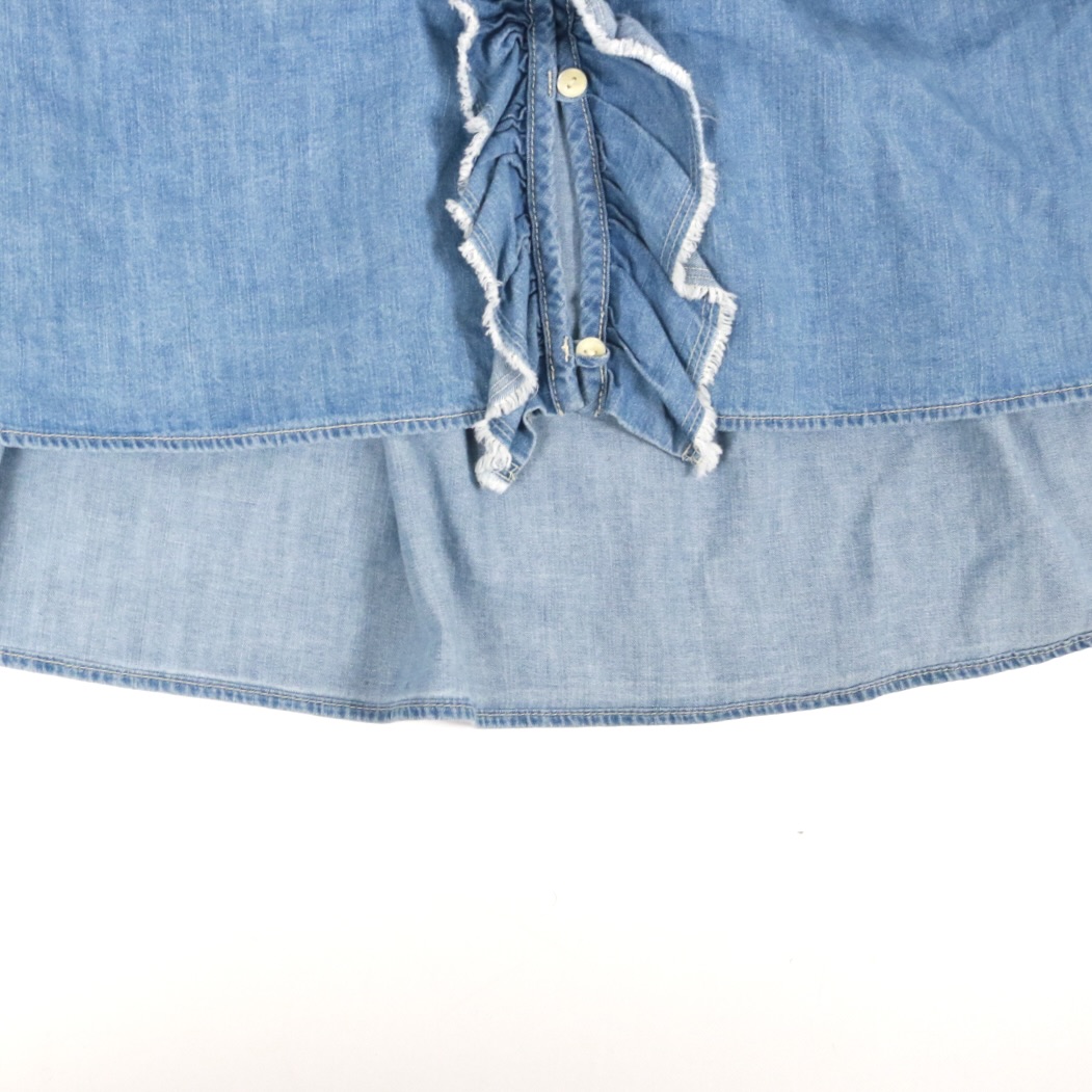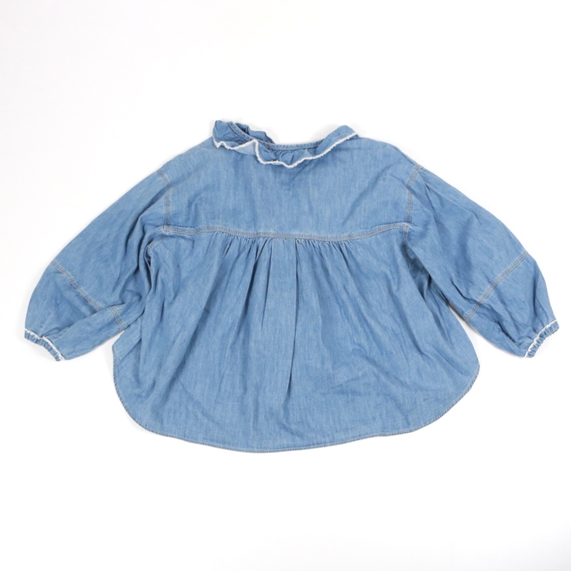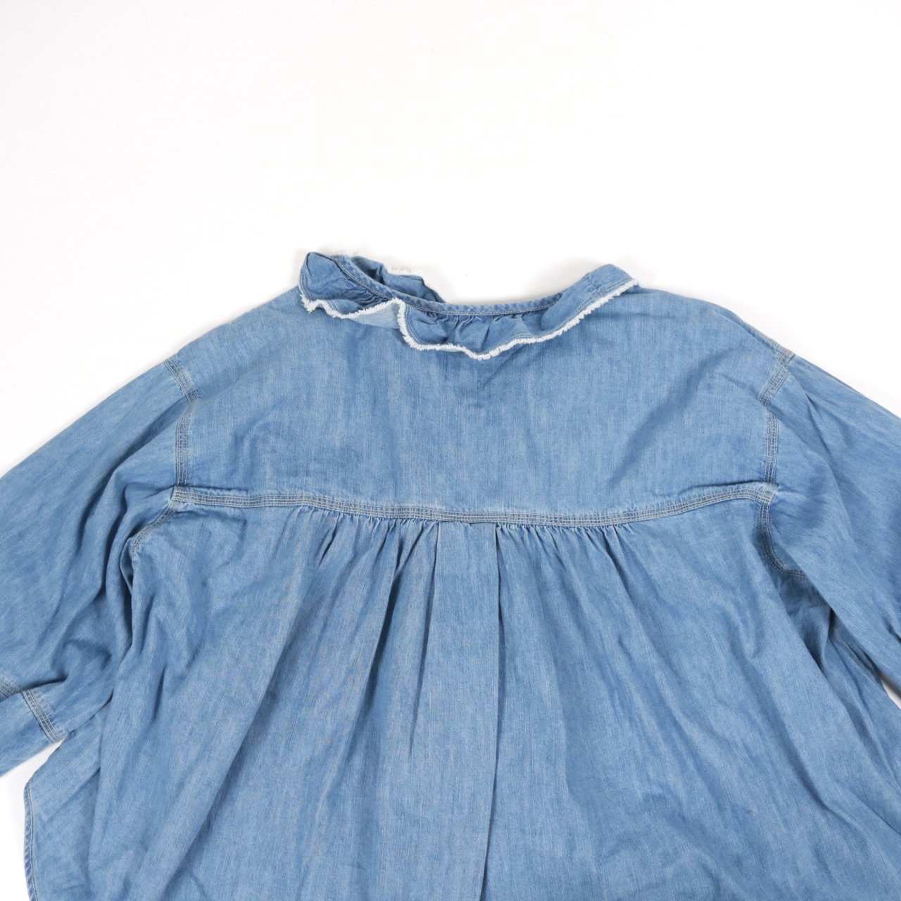 - > tumugu: ライトオンスデニムフリルブラウス 2色