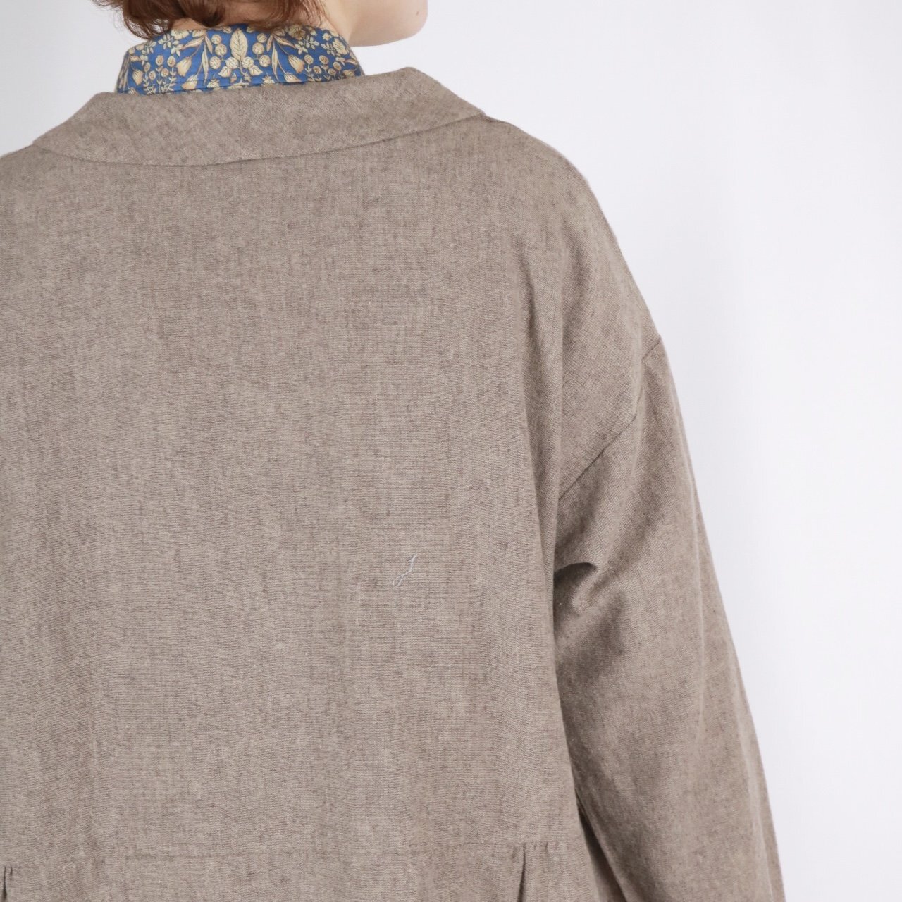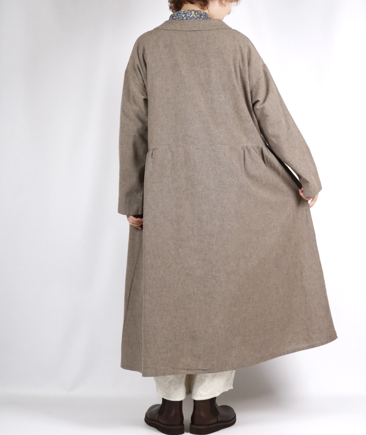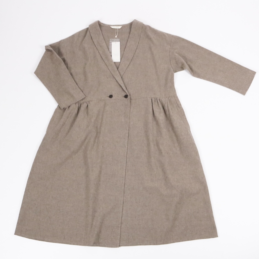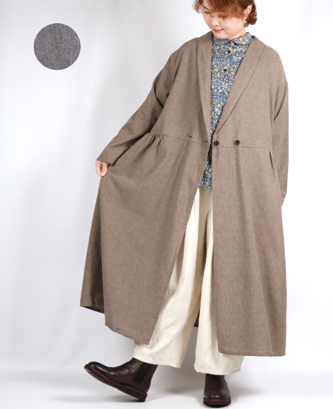 - > bluewillow コットン平織り無地起毛ショールカラーコートワンピース 2色