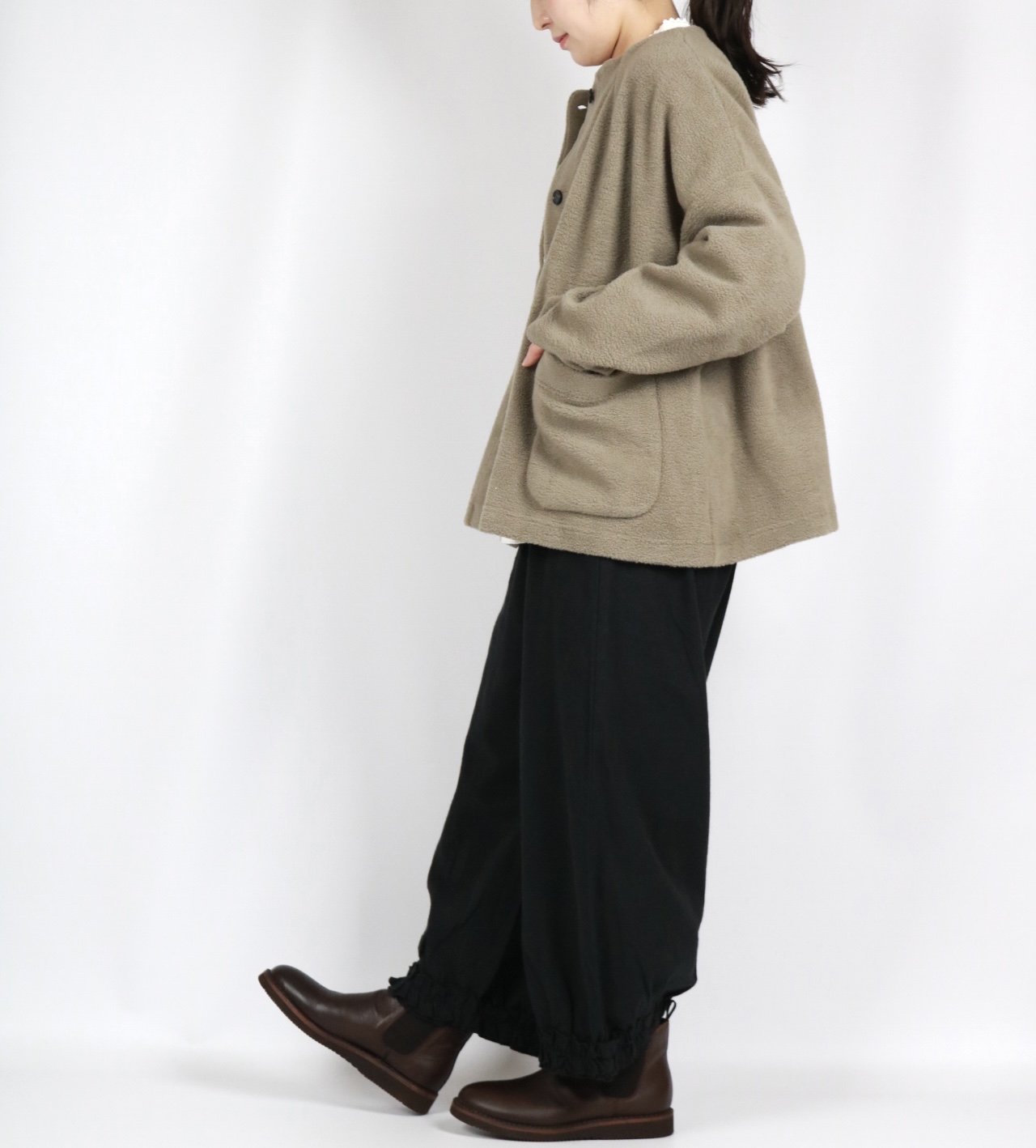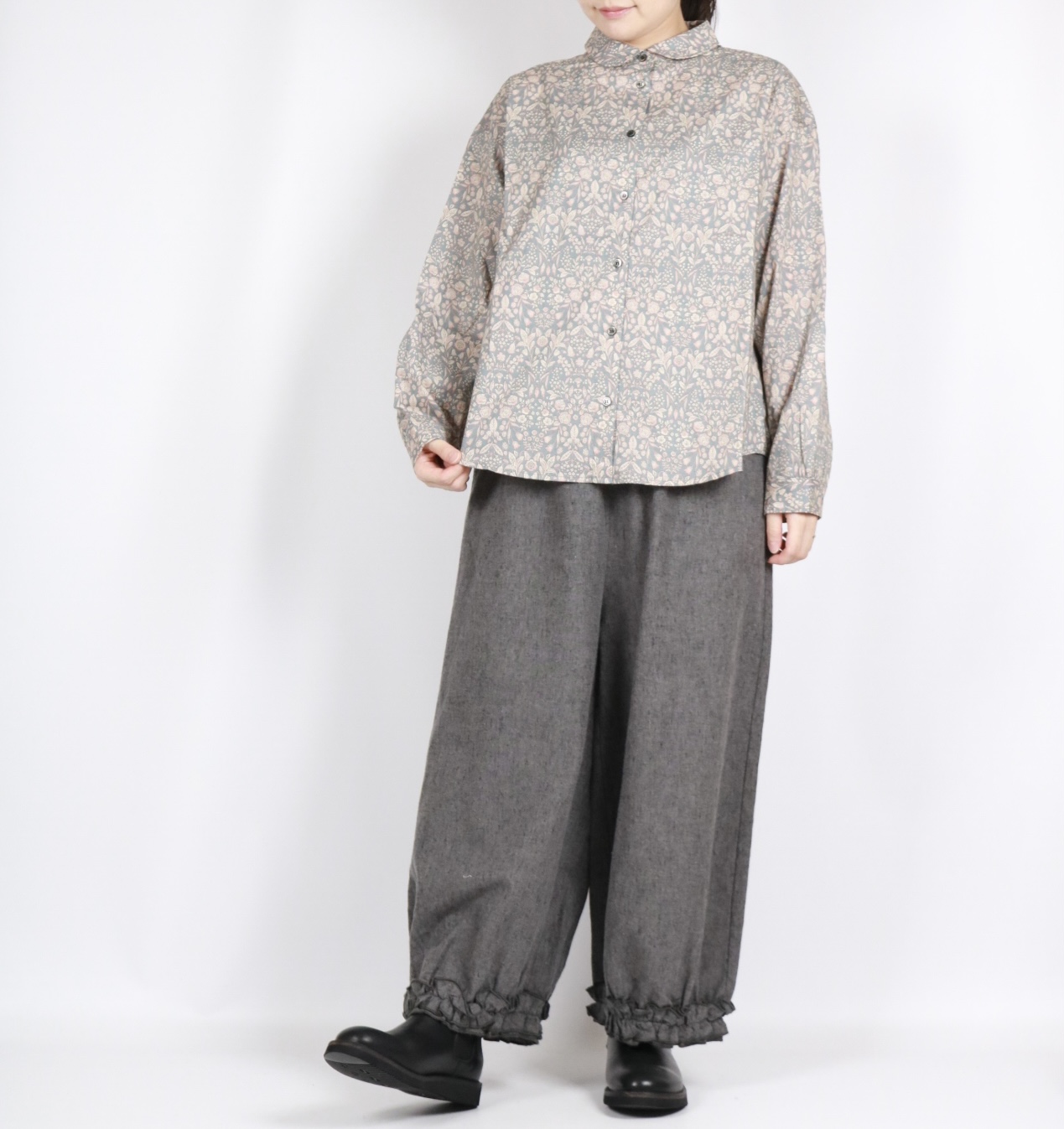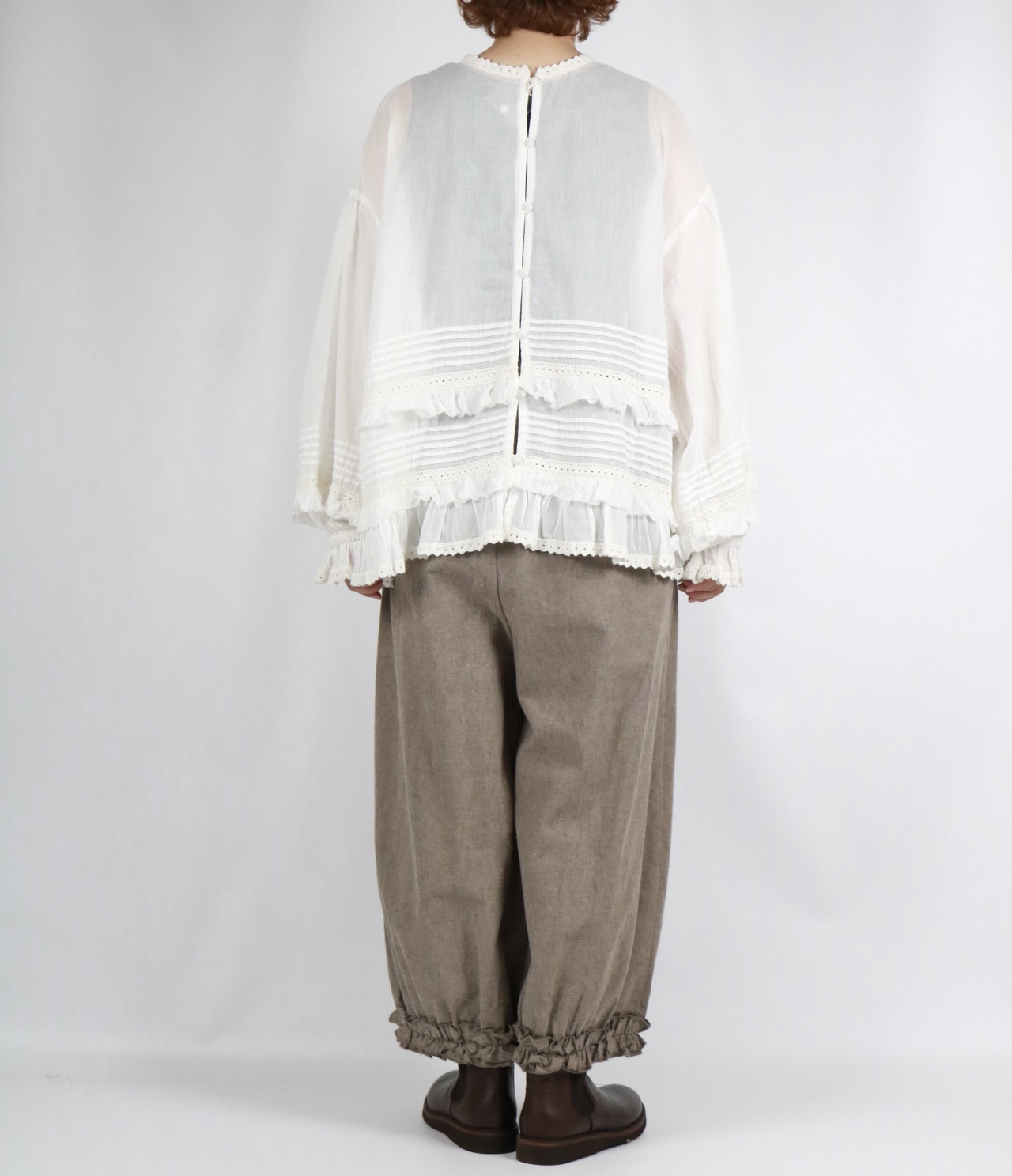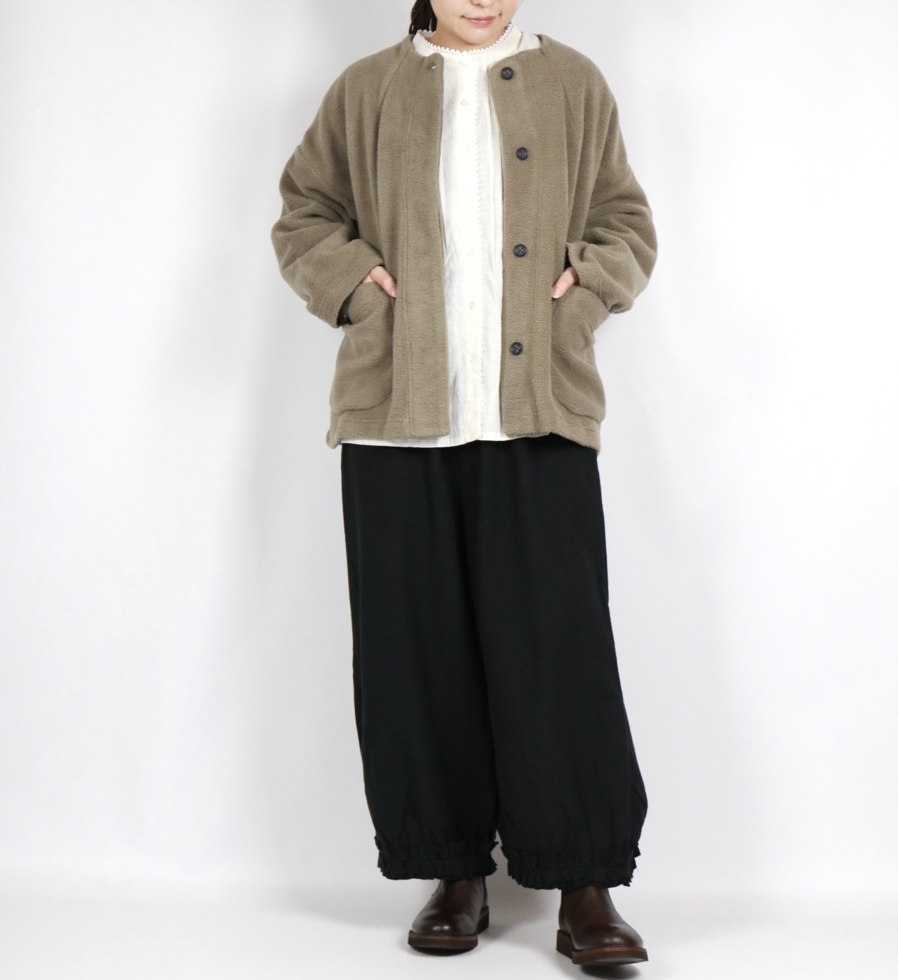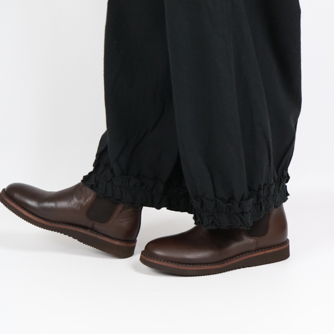 - > bluewillow コットン平織り無地起毛裾フリルパンツ 3色