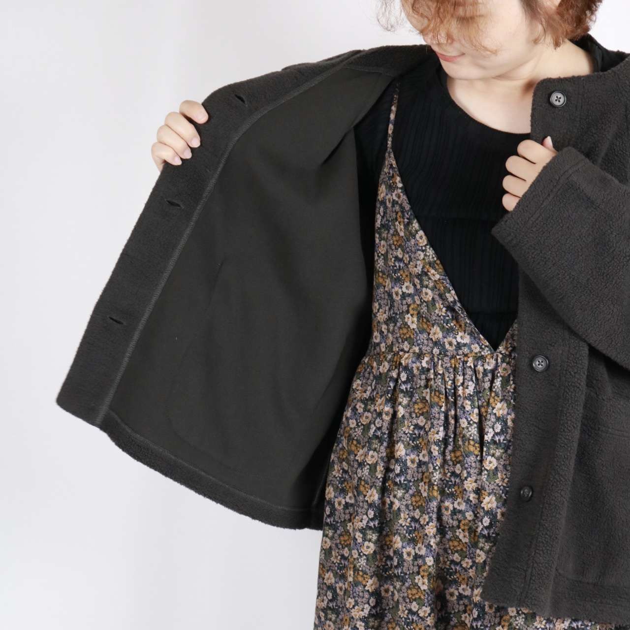 ボトルネックに比翼開きデザインで