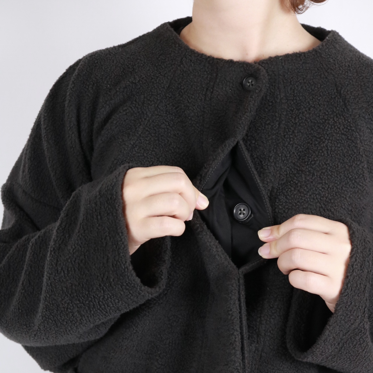 - > nachukara ボアダブルフェイス ボトルネックカーディガン 3色