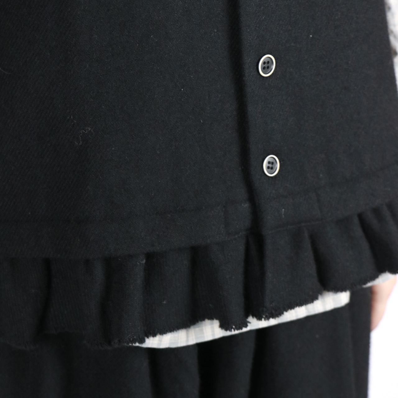 裾にあしらわれたフリルは甘すぎないよう裁ち切り(断ち切り)に近いデザインで、