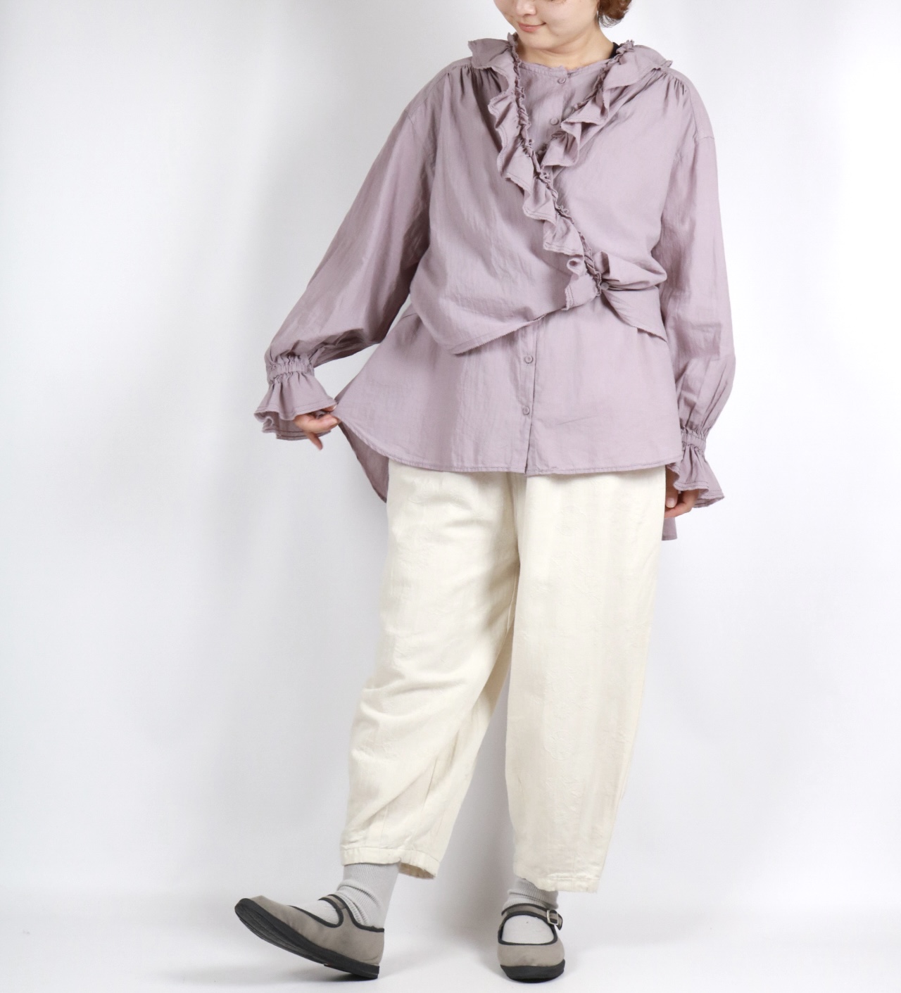 tumugu ふわふわコットンフリルレイヤードブラウス LAVENDER [TB25401]