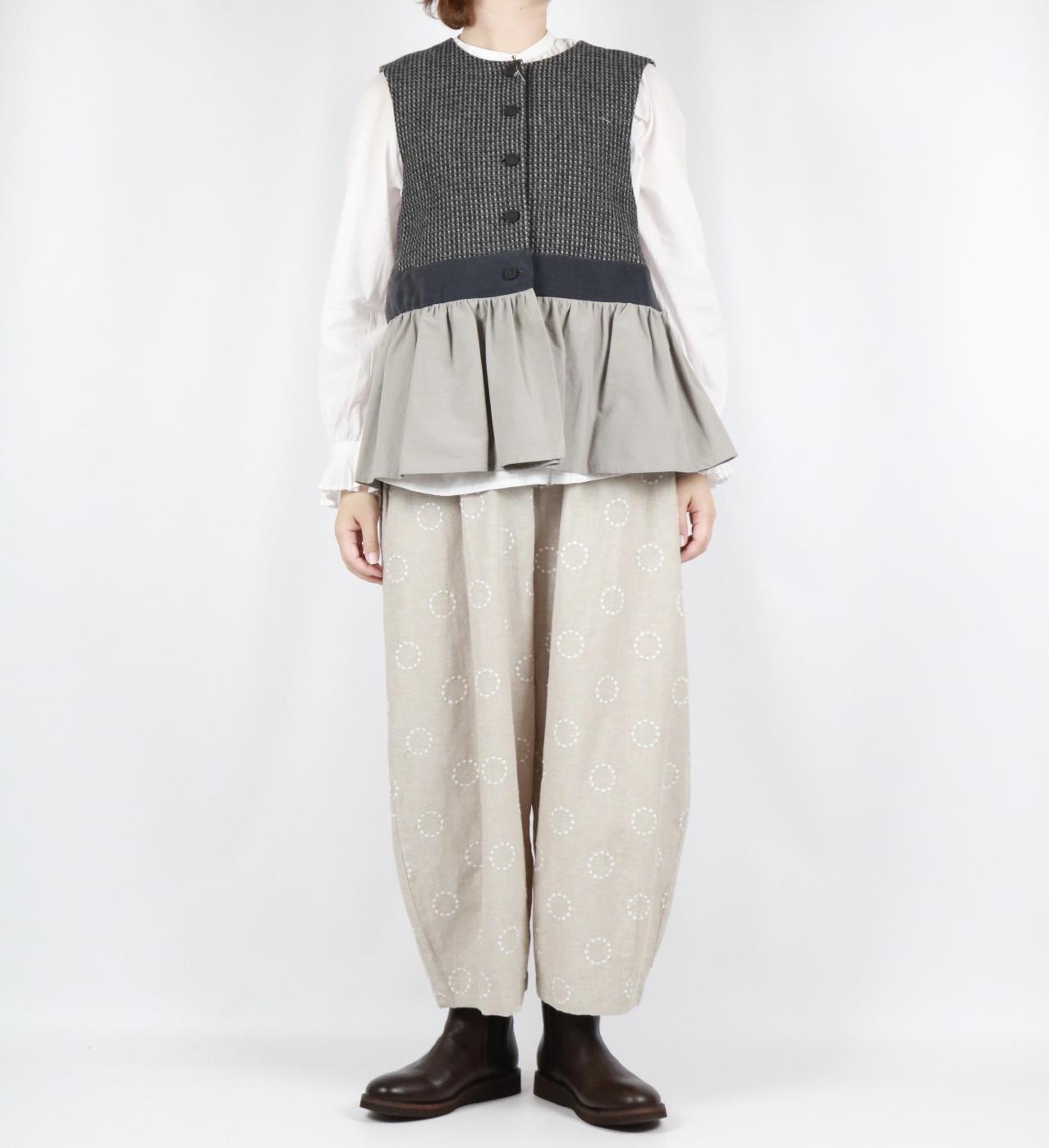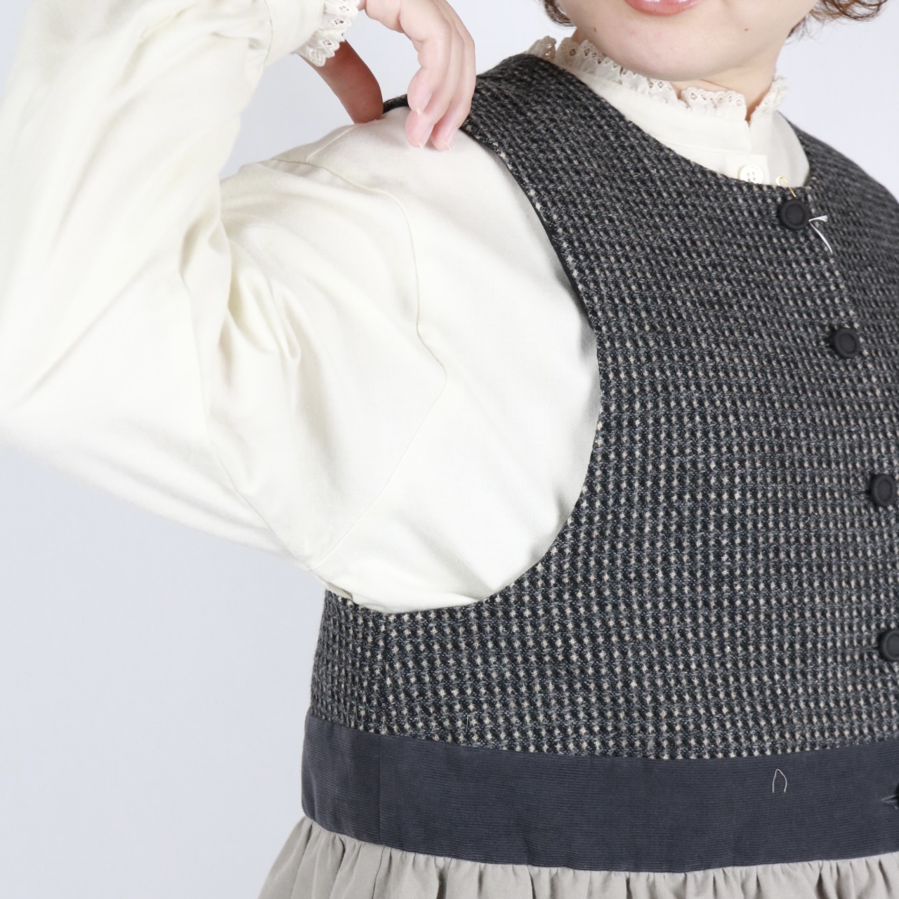 MAGALI ピンドットツイード・ヴィンテージ・ジレ グレイ [BL272GY]
