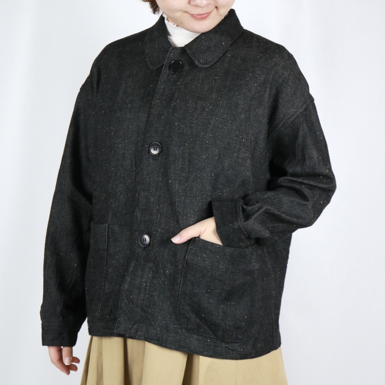 ネップが効いた軽く柔らかなコットンリネンデニム生地。