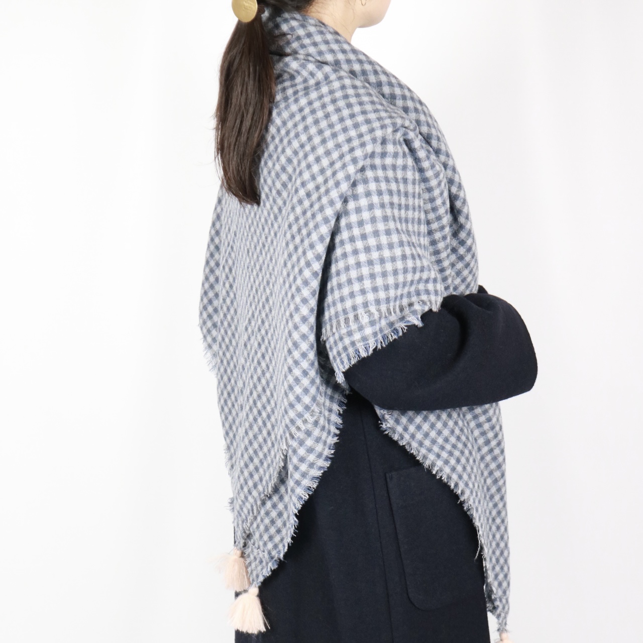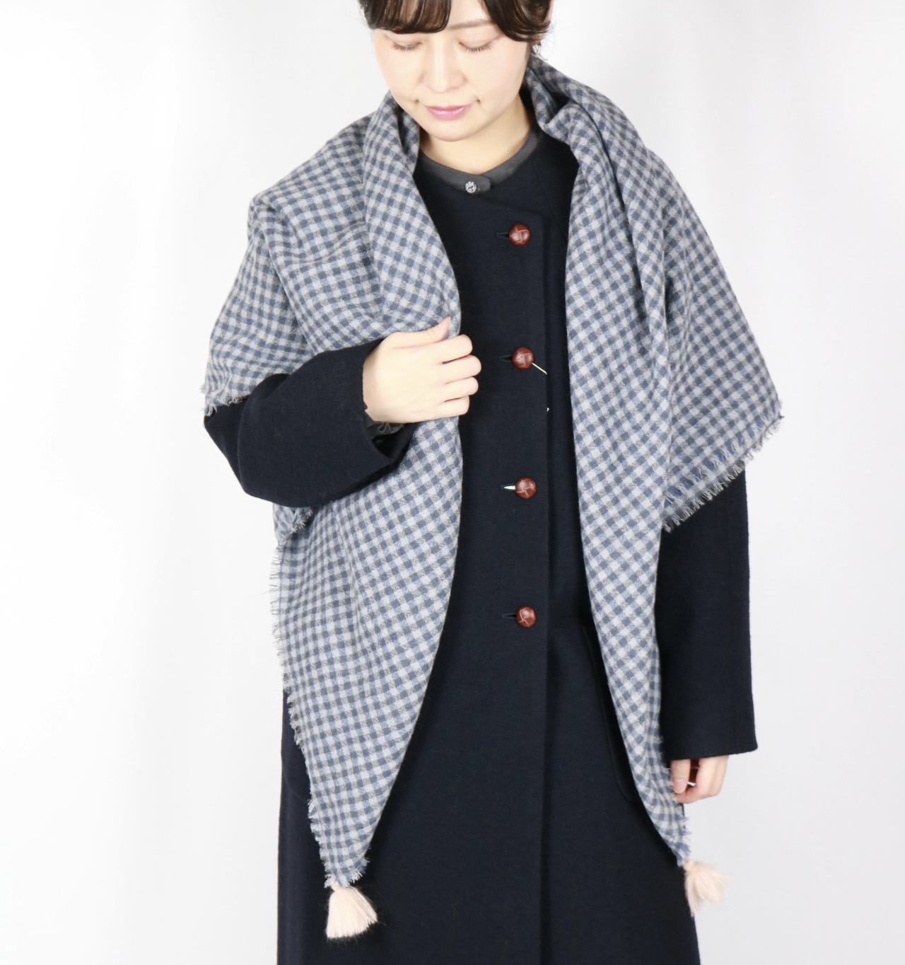 タッセルが付いたストールは首に巻いたり肩にかけたり大判のストールは冬のマストアイテムです。