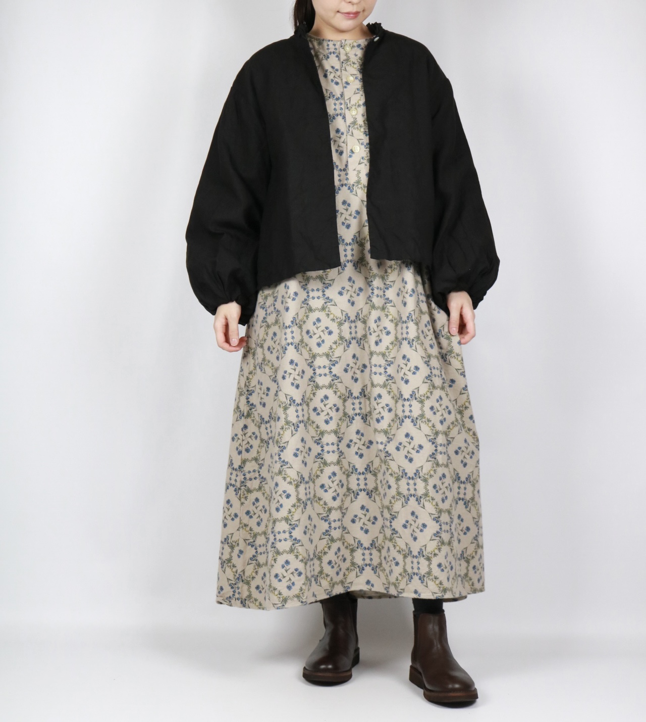 軽やかでしなやかな風合いに仕上げています。生地表面には微起毛を施し、秋冬らしいあたたかみと優しい肌触りをプラス。上品でクラシカルな雰囲気をもちながらも、日常に取り入れやすい素材感です。