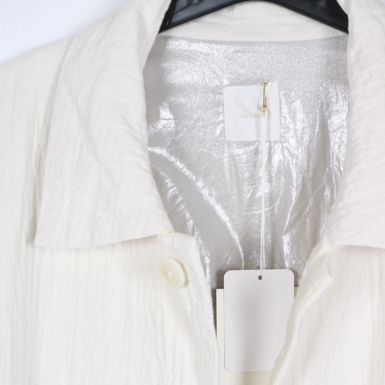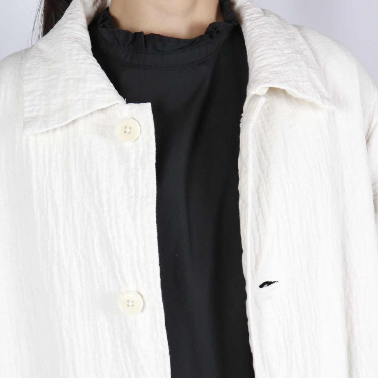 ニットやボリュームあるお袖のブラウスにも重ねやすい1着です。